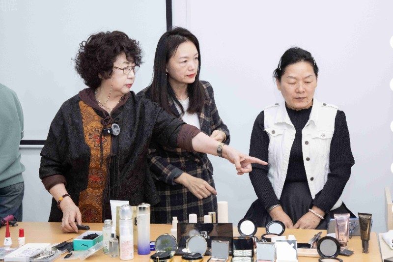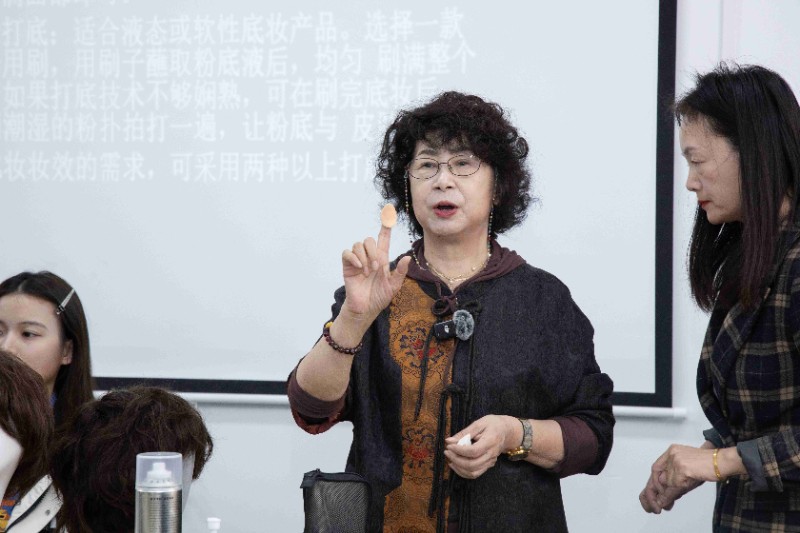 在白麗君美妝造型藝術工作室課堂上,白麗君老師繼續為大家帶來了令人驚艷的粉底打底妝容。只見她巧手翻飛,粉底如同細膩的輕紗,輕輕地覆蓋在模特的肌膚上。