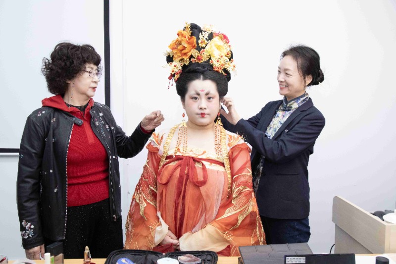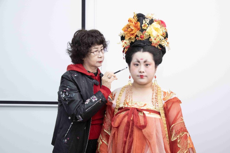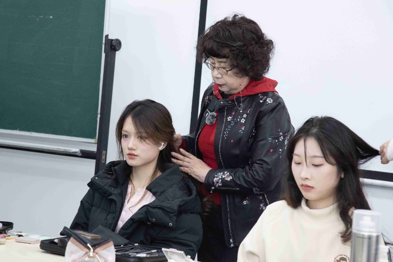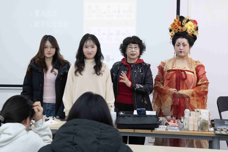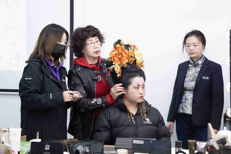 由資深美妝專家白麗君老師主講,主題為“口紅與腮紅的使用方法與技巧”。在課堂上,白麗君老師以其精湛的手法,為我們帶來了一場視覺盛宴。她親自示范,將口紅與腮紅的搭配運用得爐火純青,為模特精心打造了一款融合古典與現代元素的唐裝造型。那唐代特有的眉形在她的筆下仿佛被賦予了生命,躍然于模特的臉龐之上,讓人仿佛穿越千年,夢回大唐盛世。而口紅與腮紅的巧妙搭配,更是將模特的氣色提升到了一個新的高度,使得她既保持了現代的時尚感,又不失古典的韻味。正如香奈兒女士所言:“時尚轉瞬即逝,唯有風格永存。”白麗君老師的這堂課,不僅讓學員們學到了化妝的技巧,更讓大家深刻體會到了古典與現代交融的獨特魅力。