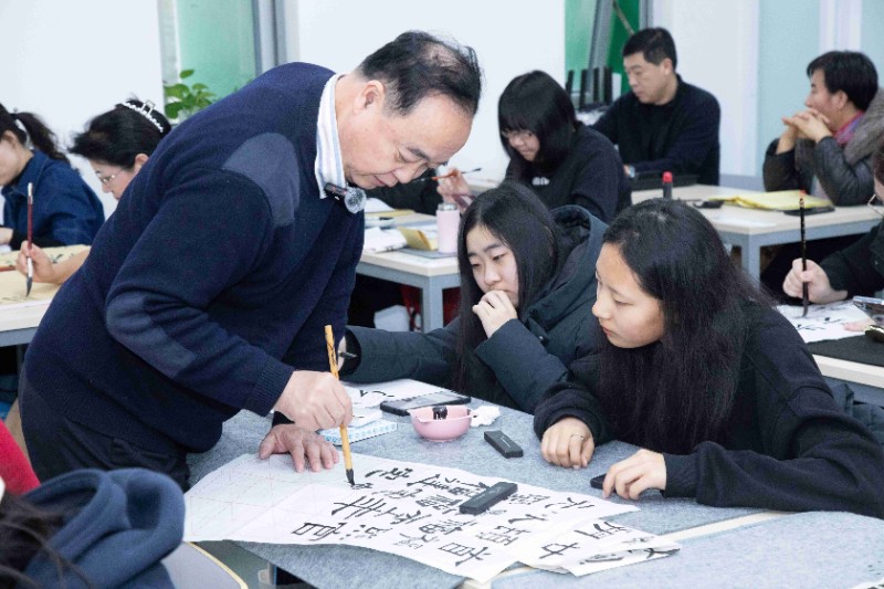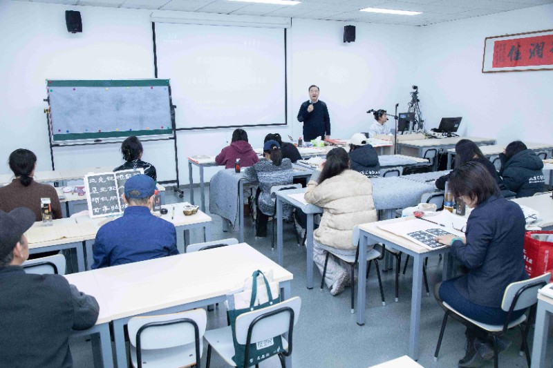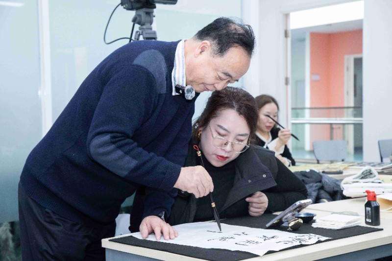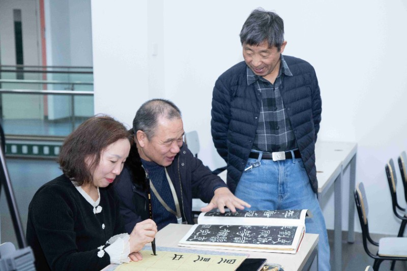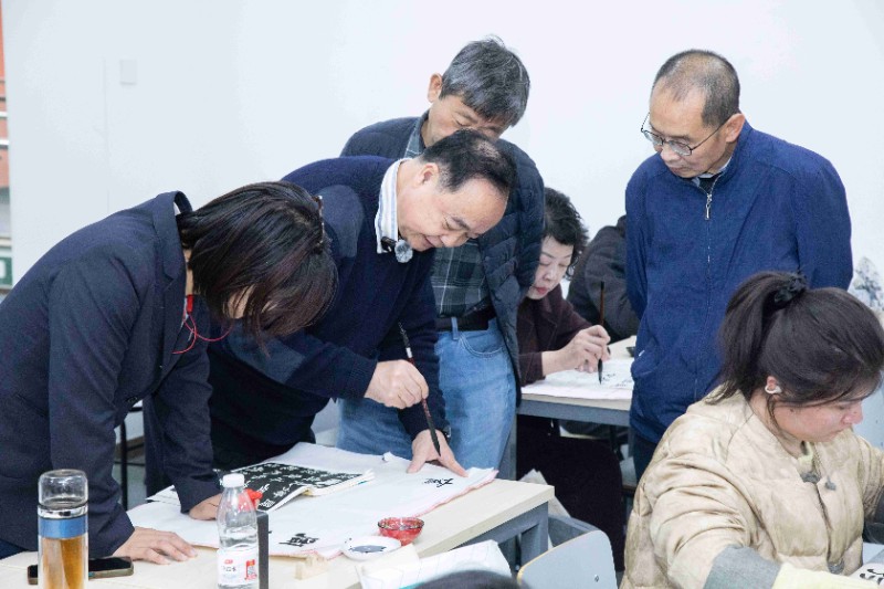 今日下午,廖教授帶來了一場令人嘆為觀止的《史晨碑》臨帖中筆劃書寫與常見筆病課程。正如朱熹所言:“讀書之法,在循序而漸進,熟讀而精思。讀書有三到,所謂心到、眼到、口到。”廖教授授課亦是心、眼、口并用,他從偏旁部首起始,認真示范,耐心講解,將臨帖和創作的精妙之法傾囊相授。書法與國學本就密不可分,在授課過程中,廖教授更是將二者完美融合。他不僅精心指導學員,還親自寫好示范筆墨帶到課堂展示,讓大家研習。經過廖教授幾次課程的悉心教誨,部分學員進步神速,其書法水平大幅提升,贏得了廖教授的稱贊。