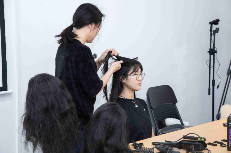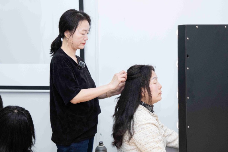 今日,匯佳開放大學美妝工作室的戴璐老師講授了精彩的美發、護發理論課。戴老師現場實操展示編發和盤發技巧,如用小發卡打造學生發型,將麻花辮挽成晚禮發型。學員們不僅掌握了新穎的發型打造技巧,還學會了實用的護發、洗發方法。