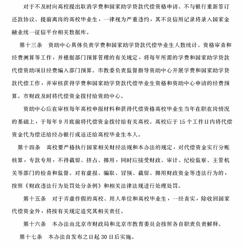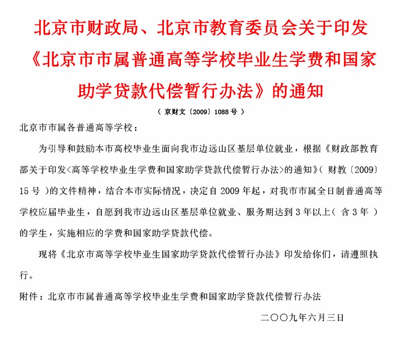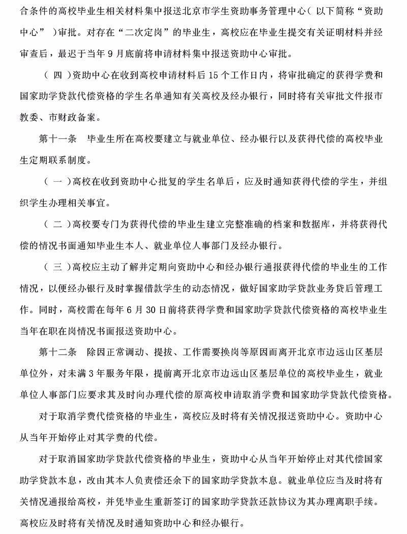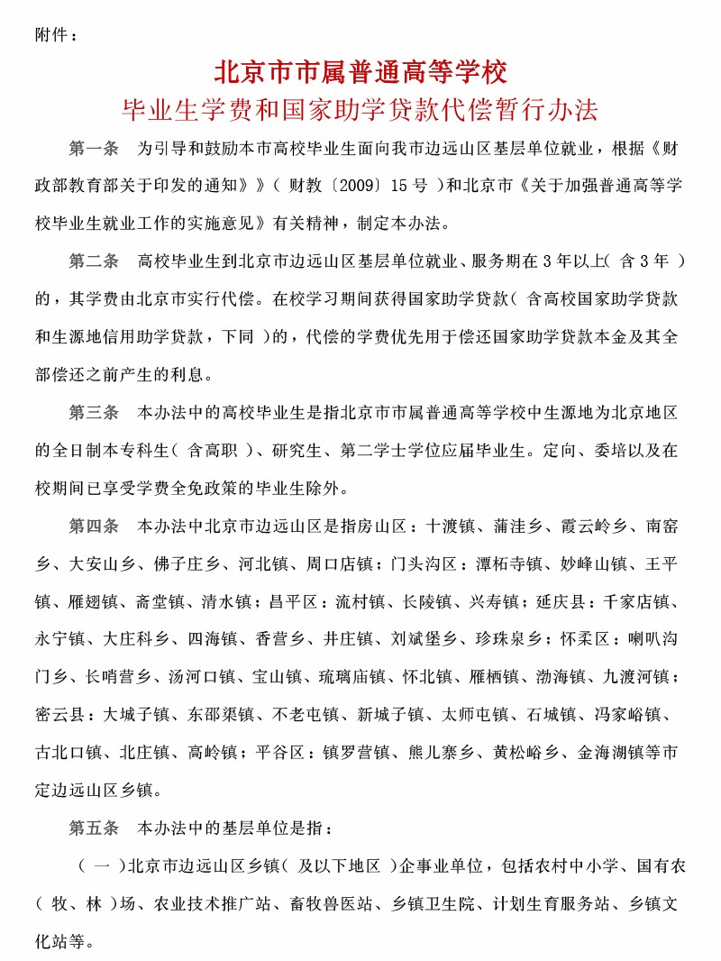 (邊遠(yuǎn)山區(qū))北京市市屬普通高等學(xué)校畢業(yè)生學(xué)費(fèi)和國(guó)家助學(xué)貸款代償暫行辦法