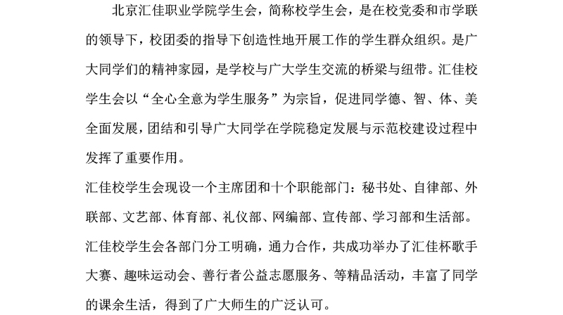 北京匯佳職業(yè)學(xué)院院學(xué)生會 (簡 介)